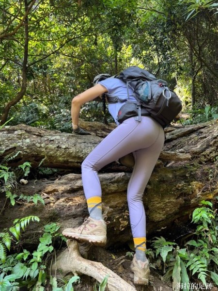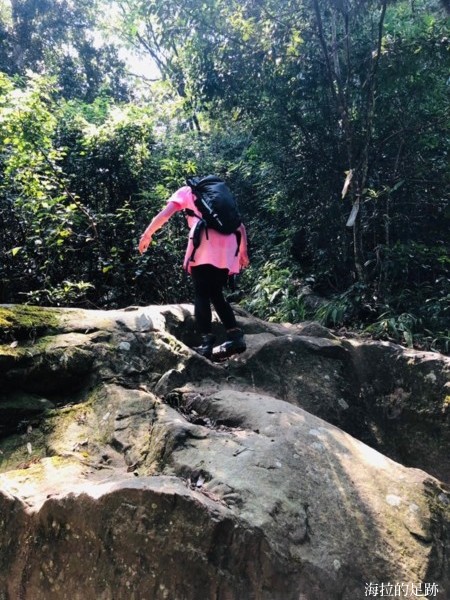 鵝公髻山步道很原始, 每個倒木、巨石或巨木都很好拍, 尤其今天光線好, 我們又開始充當網美了. 看看桂姊姊的大長腿, 海拉真心羨慕不已……..