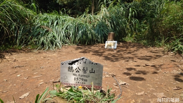 欣賞完美景, 繼續往鵝公髻山東北峰前進. 9:54 來到三角點處, 這裡無展望, 大家輪流跟三角點拍照.