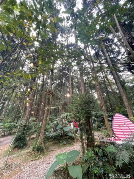 走了快五十分鐘, 我們穿越濃密的柳杉林, 來到一處展望極佳的開闊處, 回頭看看來時的柳杉林, 真的超美滴~~