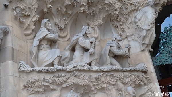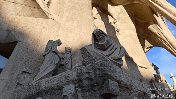 誕生立面顧名思義以耶穌基督的誔生為主題, 牆上的雕塑呈現了聖母瑪利亞懷胎到基督成長的故事, 因是歡迎慶祝基督誕生, 以歡喜愉悅的雕塑為主.