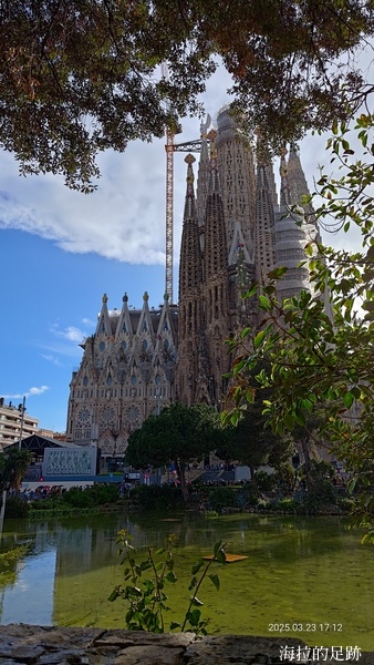 下午五點多來到聖家堂, 這時天空依舊飄著毛毛細雨, 導遊給我們一點時間到聖家堂對面的小公園拍照, 這裡算是最佳拍照點, 可以拍到聖家堂全景及倒影, 奈何天公不作美, 我們沒法拍出美美的照片.