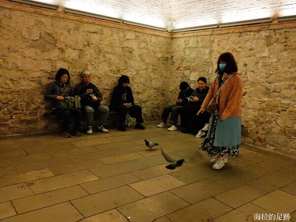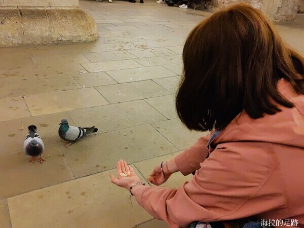 來到畢卡索美術館 (Picasso Museum Barcelona), 導遊讓我們先去上廁所跟逛禮品店, 因為預約的時間還沒到. 在西班牙到各個景點參觀遊玩都得先預約買票, 然後提前到場等候. 等待的時間太無聊, 只好追著鴿子玩.