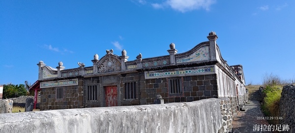 走到底是擁有三百年歷史的陳家古厝, 三進平房大厝, 以當地硓𥑮石與玄武岩為牆身, 支撐屋頂結構,並以彩繪瓷磚、交趾陶、泥塑等為裝飾, 瓦房、條窗、馬背, 完全閩南傳統建築形式. 房子裡面無法進入參觀, 不知是否因為冬天淡季的關係.