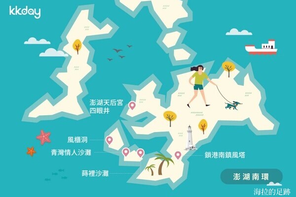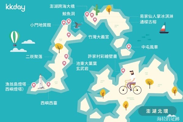 來到澎湖遊玩, 最方便的交通工具是機車, 若是規劃機車環島, 澎湖有兩條經典路線:「澎湖北環」與「澎湖南環」, 再加上馬公市區的景點, 就算玩遍整個澎湖本島了.