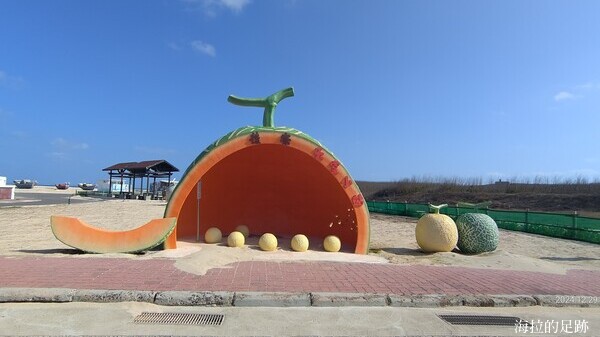 第一站來到天堂小站, 哈蜜瓜造型的公車站超極無敵可愛的啦!