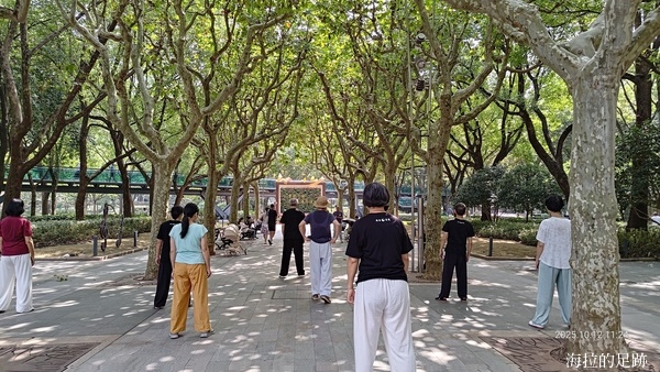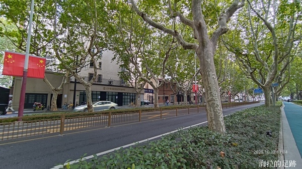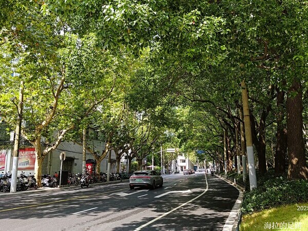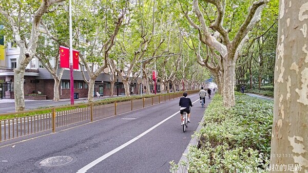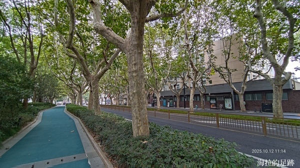 經過籃球場後, 海拉改走公園外側的林蔭大道, 想要目賭宛平路梧桐樹的風采. 宛平路這邊是徐家匯公園的第三期工程建設, 占地約1.47公頃, 設置了籃球場、小型足球場等體育健身設施.