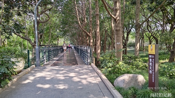 景觀天橋走到底會到達瀑布區, 沿途都有綠蔭, 園內共種植有130多種植物.