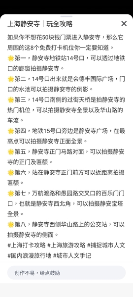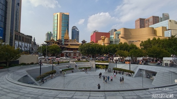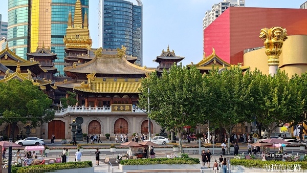 第四: 靜安寺地鐵站15號出口旁邊是靜安寺廣場, 在最高點可以拍攝靜安寺正面全景. (P.S. 廣場旁有市集可以逛.)