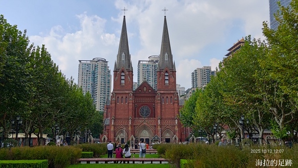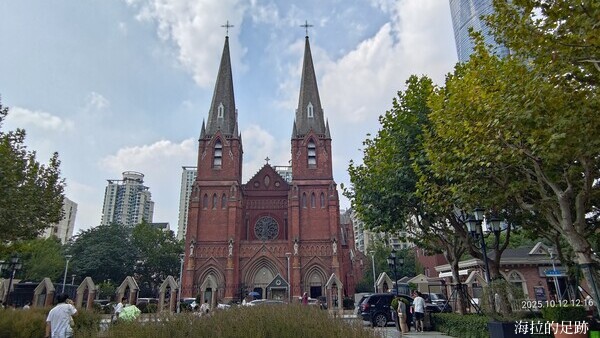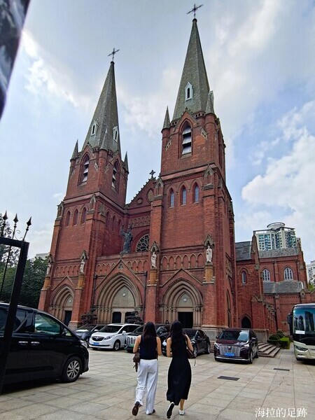 徐家匯天主堂始建於清光緒二十二年 (1896), 宣統二年建成, 哥德式建築外觀, 曾有「遠東第一教堂」的美譽. 這是海拉第二次來到這裡, 第一次來它正好在整修, 無法參觀. 今天周日, 剛好遇到教會時間, 依舊無法入內參觀.