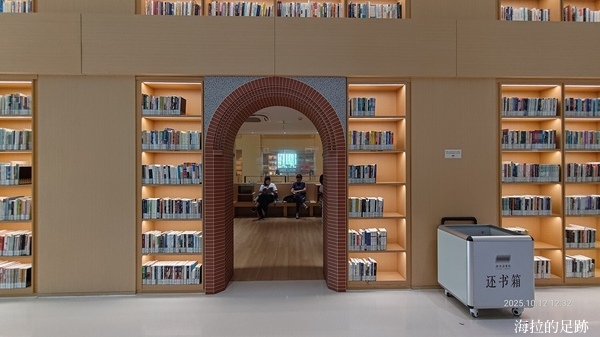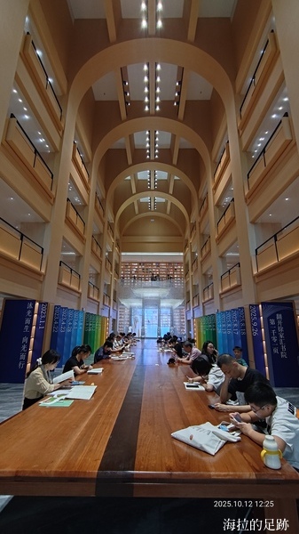 館內的動線也很多變, 逛完這邊後又發現那邊好像沒逛到. 藏書區與閱讀區互相交錯, 廊道間也規劃了圖書與典藏書籍的展出. 出發前曾查過此圖書館的兩大鎮館之寶是《永樂大典》、《四庫全書》, 但海拉找不到放在哪裡. 也是, 整座書院藏書達8萬餘冊, 應該要先電腦查詢區那裡查找存放地點比較快.
