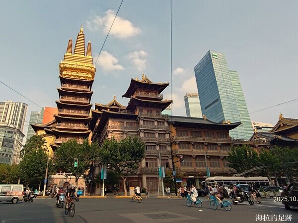 第三: 14號出口南側的過街天橋是拍攝靜安寺的熱門位置, 可以拍攝靜安寺全景及華山路的車流.