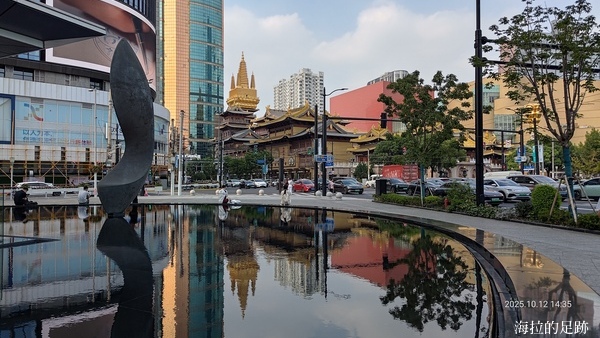 第二: 14號出口出來是會德豐國際廣場, 門口的水池可以拍攝靜安寺的倒影.