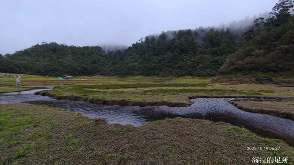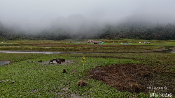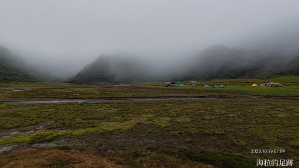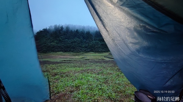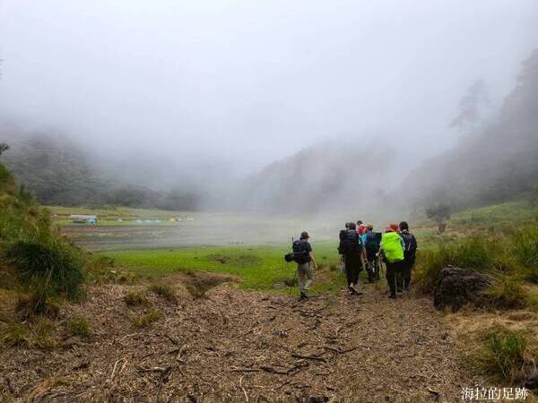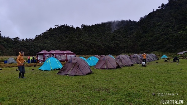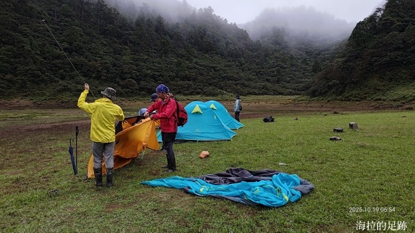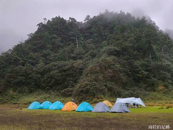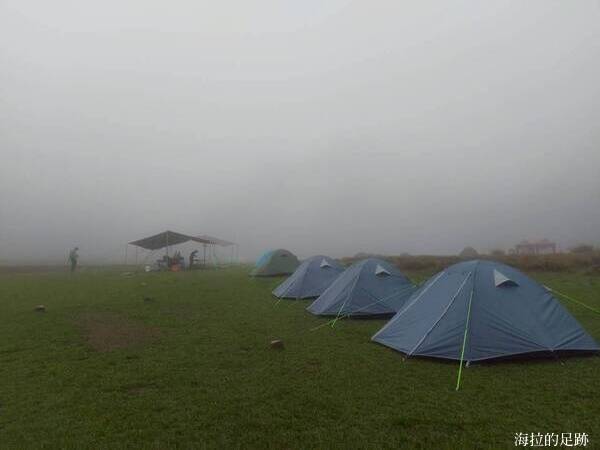 由於預報今日十點開始下雨, 所以昨晚說好四點起床, 四點半早餐. 一大早天未亮, 協作就在外面喊早餐延後一小時, 因為他的炊事帳被吹走啦! 昨晚風大雨大, 帳篷被風吹的啪啪響, 我們在帳篷內聽著風聲雨聲呼嘯聲, 深怕帳篷會被吹走, 相信大家都沒睡好.