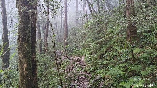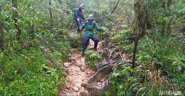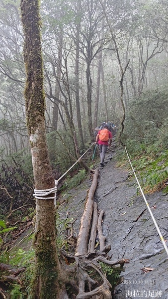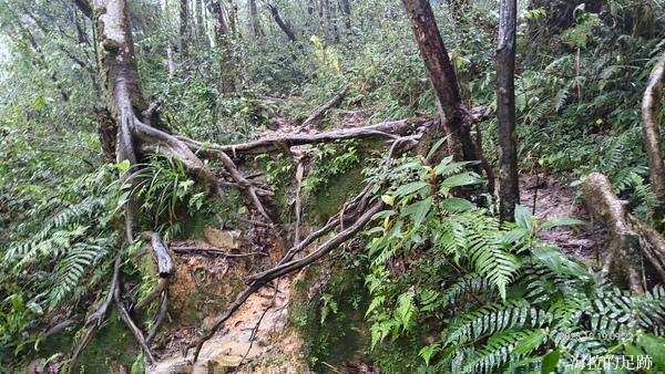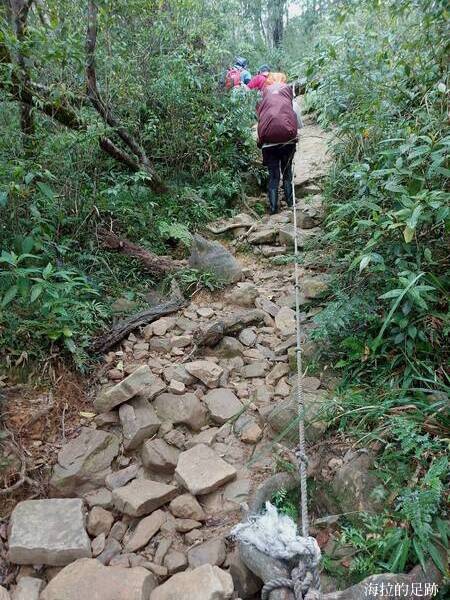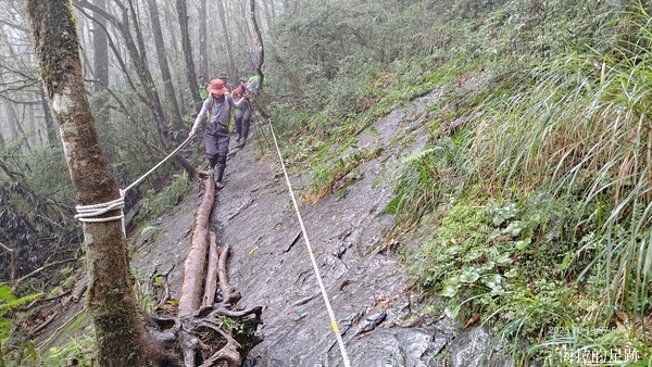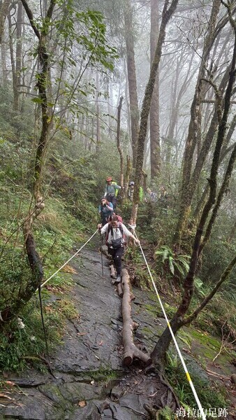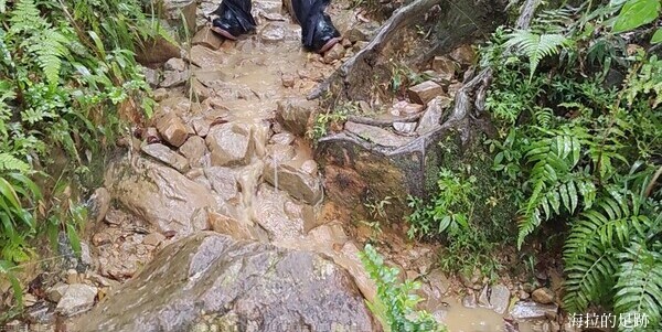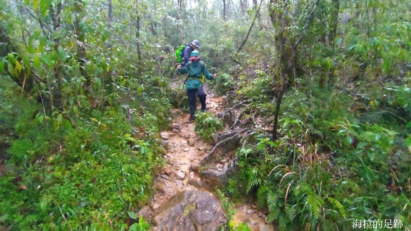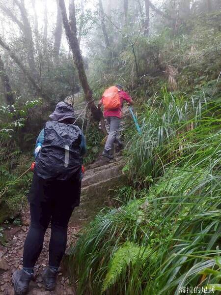 就下變成雨訓啦! 這還是海拉爬山以來第一次遇到這樣的大雨, 山裡的天氣變化無常, 此時進退不得, 只能小心腳下, 力求穩定且平安地回到登山口.