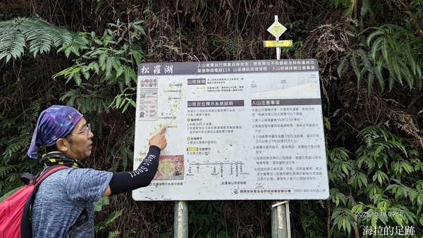 繼續陡上450公尺, 來到步道最高點, 拳頭姆岔路. 這裡是抵達松蘿湖前最後有訊號的地方, 布雷克戲稱為松蘿網吧.