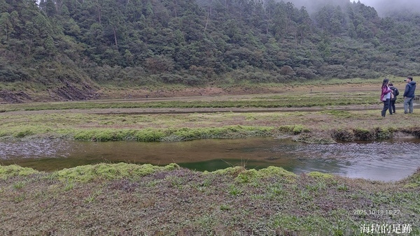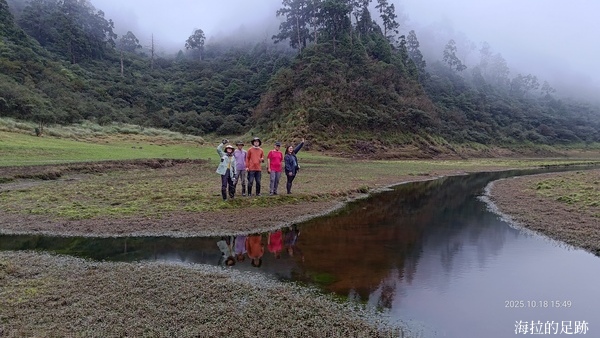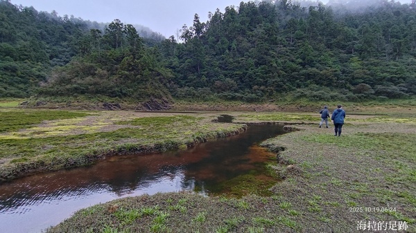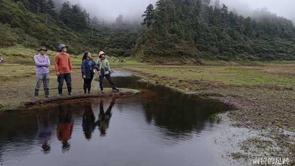 最後一段則是從拳頭姆岔路口往下走到松蘿湖, 大約350公尺的距離, 我們很快地抵達. 看到湖的那一刻, 大家既開心又失望. 開心的是終於抵達目的地了, 失望的是說好的湖呢?