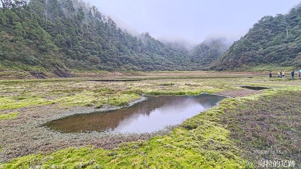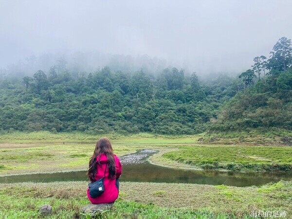 崇山峻嶺中的松蘿湖, 因宜蘭多雨, 湖面常有一層薄紗般的雲霧籠罩, 讓人無法一窺全貌, 如同少女一般嬌羞美麗, 故有「十七歲少女之湖」的別稱. 剛才還一片清朗, 轉眼間就一片霧濛濛.