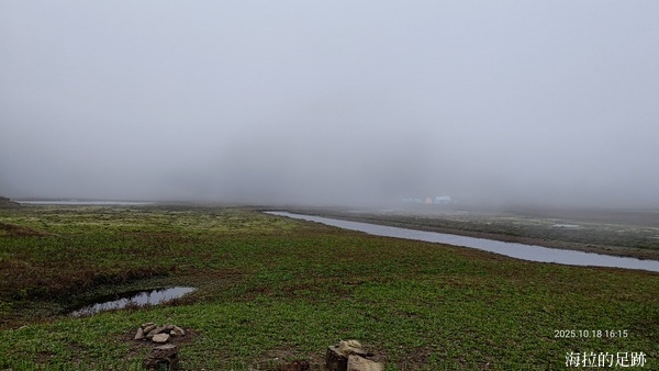 網路上的資料顯示松蘿湖最佳觀賞期為每年10月至隔年4月, 這段期間水量豐沛, 湖面波光粼粼、湖光山色. 其他月份水位較低, 能欣賞到蜿蜒曲流、碧草如茵的景緻. 現在是十月中下旬了呀, 怎麼還是蜿蜒曲流且碧草如茵呢?