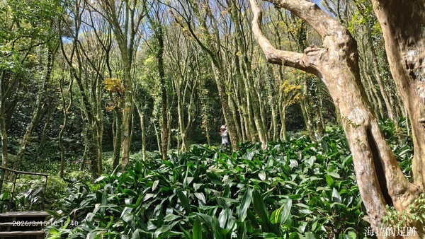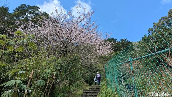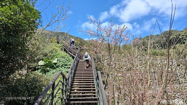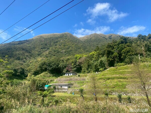 今天的天氣真的很適合爬山, 天氣晴朗, 風和日麗, 這裡的櫻花已經掉的差不多了. 怪的是沒看到什麼海芋, 看看旁邊大梯田花卉生態農場也是一片綠油油, 再過一陣子才是繡球花的盛開時節.