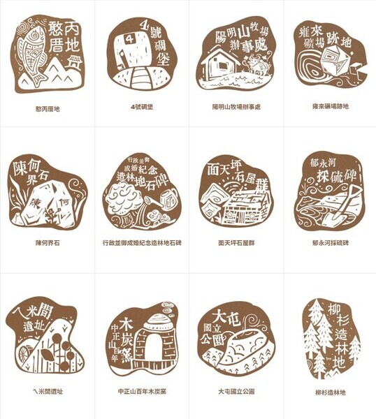 12款刻印圖樣如下: