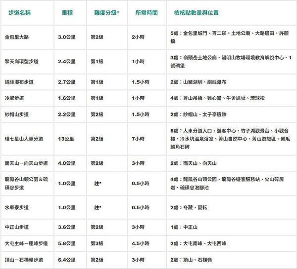 註*:未於分級評估內,為輕鬆好走之大眾路線。