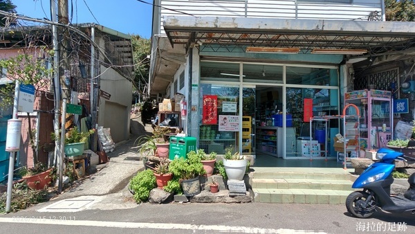 10點從竹子湖山中園野菜餐廳旁開始走青楓步道, 12點半走抵達中正山十八份登山口, 全程5.4公里, 費時約2.5小時. 登山口旁有間立祥商店, 趁著公車還沒來, 進去買了涼飲.