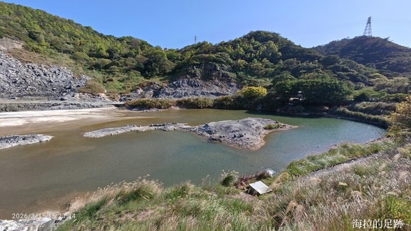 步道後段有一方平靜池水, 由雨水與地表逕流聚集於谷地凹陷處而成, 由於富含礦物質, 經陽光折射後呈現美麗的藍綠色澤, 與後方荒涼岩壁交織成獨特美景, 是攝影取景的絕佳地點.