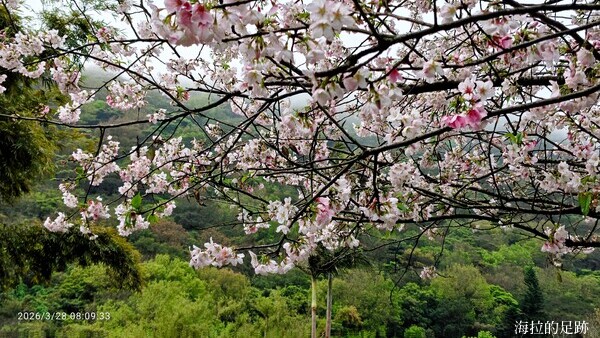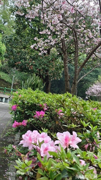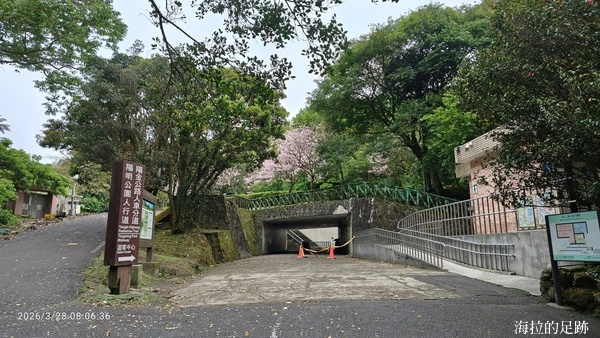 陽明山花季開始了, 又臨近清明節, 原本以為會人擠人, 但今天的260公車還好, 人不多, 停的站也不多, 從台北車站出發, 半小時就到陽明山公車總站. 先上個廁所, 整理裝備後隨即往人車分道入口前進, 途中的櫻花及杜鵑花開的正盛.