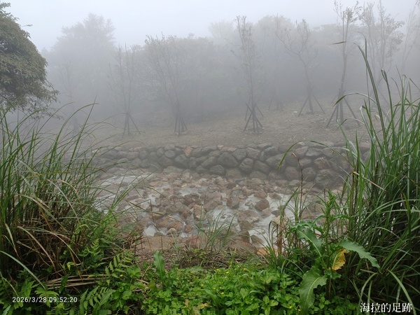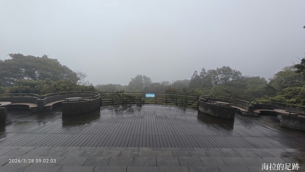 往竹子湖的途中, 開始飄起綿密的雨滴, 霧色漸濃, 來到第三個檢核點-竹子湖觀景台時, 四面白牆, 看不到任何景色.