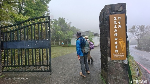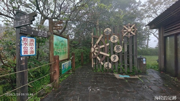沿著路直行來到蓬萊米原種田故事館, 這裡可以進去參觀, 館內豐富展示介紹了竹子湖的前世今生與人文生態. 我們沒有進去參觀, 上個廁所後就離開. 然後, 沿路經過台北市海拔最高的國小-湖田國小, 再接著走水車寮步道, 步道口設有飲水台.