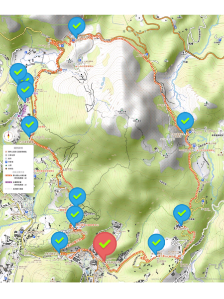 終於完成啦! 完成所有的檢核點及刻印後, 原本的 ”?” 會變成 “P”. 回到前山公園上洗手間, 然後又休息一會兒才去搭車下山.