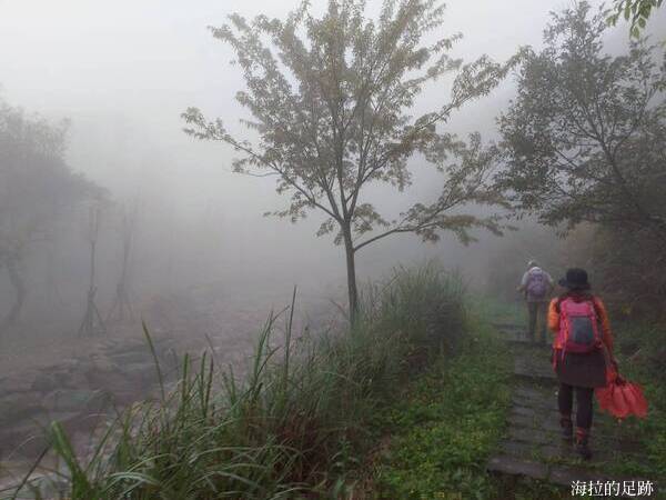 來到中湖了, 因為霧很大, 石階或石板路較滑, 過了小觀音棧後, 我們都走在馬路上, 沒有走在人車分道的步道上.