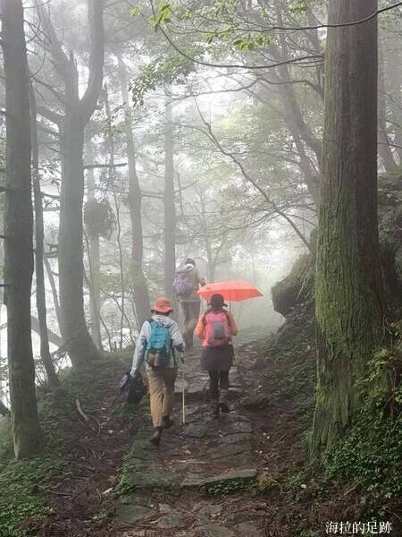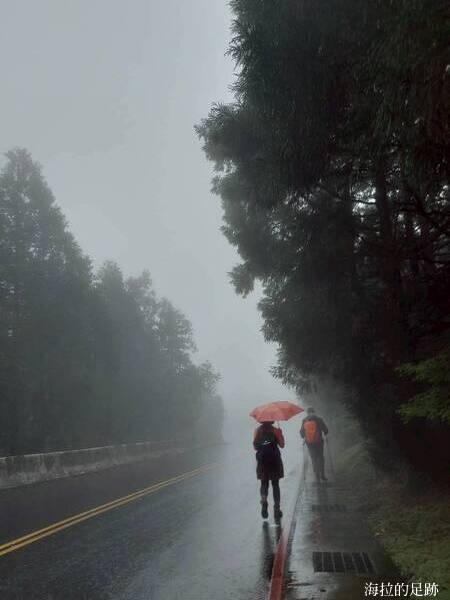 海拉覺得陽金公路段算是散步路線, 平緩好走. 百拉卡公路入口站至冷水坑段適合平常有在運動或健行的朋友, 坡度較陡, 有石階, 今天下了小雨, 石階非常濕滑. 冷水坑至新園街段大部份為下坡路段, 不難走.