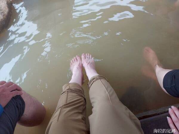 一樣來過冷水坑很多次, 今天也是第一次來到冷水坑溫泉浴室, 這裡是第五個檢核點. 我們來時已經有五個韓國歐巴在泡腳, 天氣寒冷, 又走了那麼多路, 我們也參一腳, 但水溫太令人失望了, 一點都不熱. 不知是只有今天這樣, 還是平常的水溫就這樣溫溫滴.