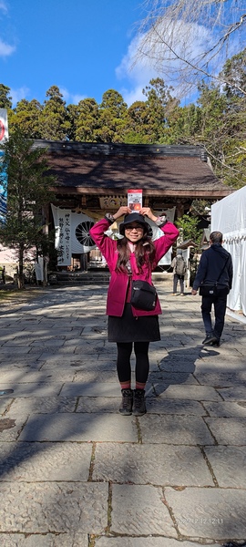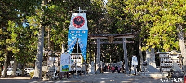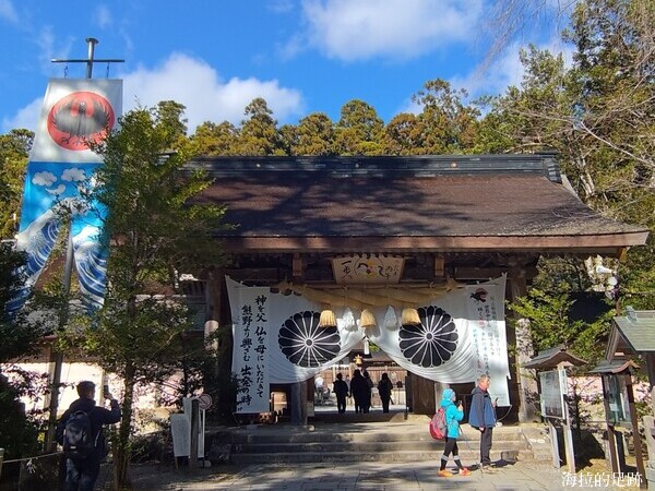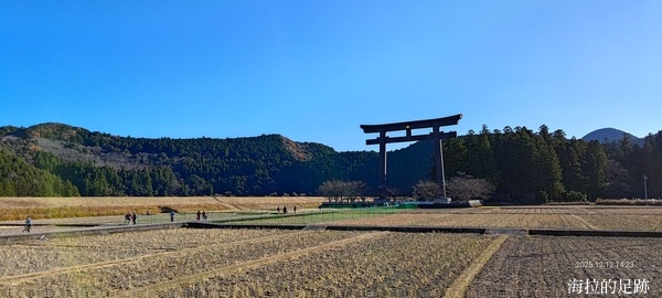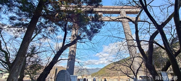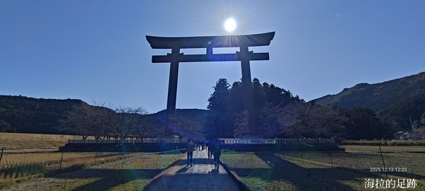 大齋原外頭有座令人讚嘆的鳥居, 這是全世界最大的鳥居, 高約34公尺, 寬約42公尺. 鳥居是跨過生死的大門, 我們不畏生死 (是這樣用的嗎? 哈~~), 快速地通過, 趕著去蓋章, 但這不是今天最後的章.