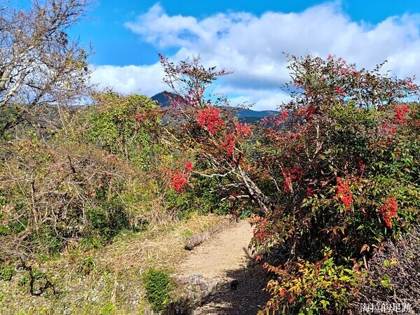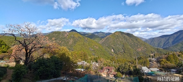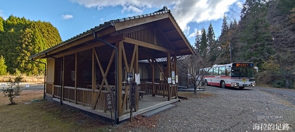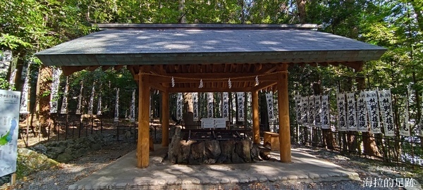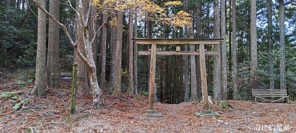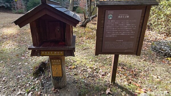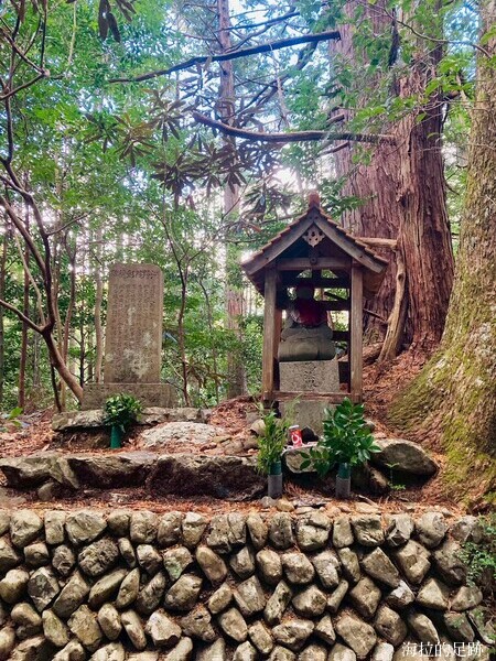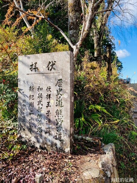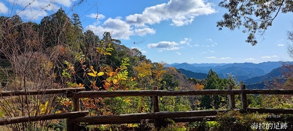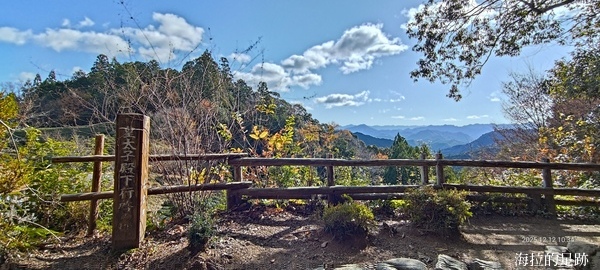 伏拜茶屋對面有個階梯, 往上走一小段路會到達皇太子殿下行啓之地, 這邊有個小平台可以眺望遠方層層山巒, 應該也可以看到遠方山谷中的大齋原, 但海拉當天沒看到, 不知是眼力不佳, 還是怎地…