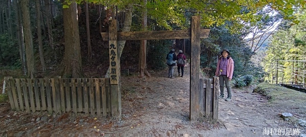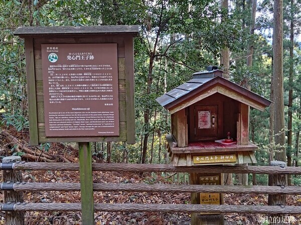 這次走的熊野古道中邊路路線, 在熊野古道眾多路線中是比較平緩好走的路線,從發心門王子到熊野本宮大社約7.5公里, 那米哥安排3小時走完. 我們8:38從公車站牌這裡起走, 大約20分左右來到第一個押印所-發心門王子 Hosshinmon Oji.