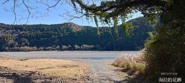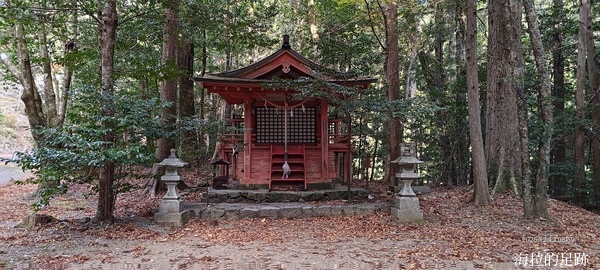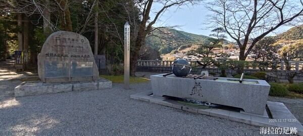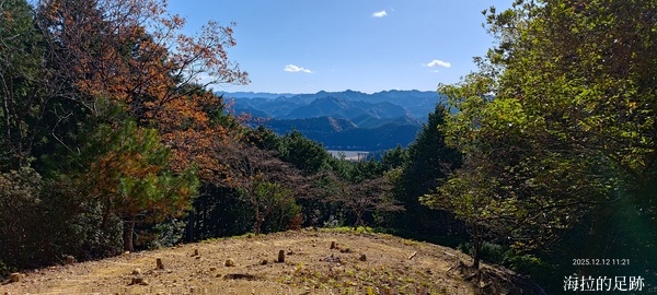 說是觀景台, 並沒有任何亭台樓閣, 就是一小塊平坦的土地, 地面上放了塊木板,在這裡可遠眺熊野本宮大社及大齋原大鳥居的美景, 眼力不佳的海拉只看到大齋原的大鳥居.