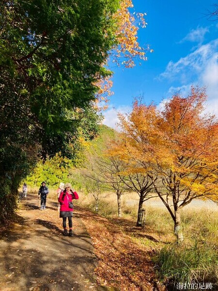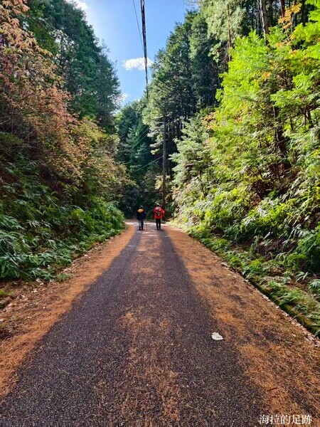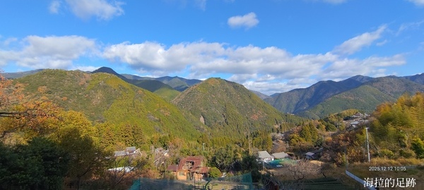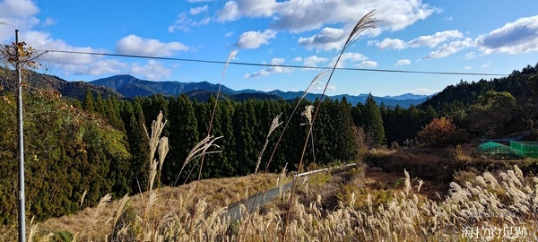 出了森林, 又進入村莊. 眼前的山巒疊翠, 再加上秋末初冬的橘紅色彩, 讓人覺得心曠神怡且暖和.