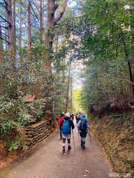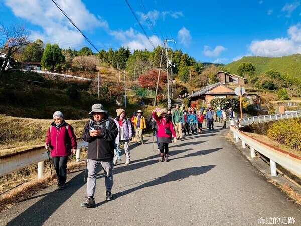 從發心門王子到水吞王子大約1.7公里, 途中經過會經過發心門村, 大多為柏油路, 平緩好走. 鄉間田園風光優美, 再加上陽光明媚, 此時大家還能走在一起, 邊走邊聊天.