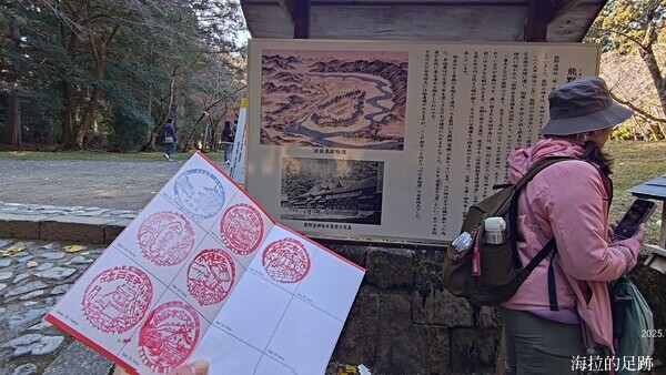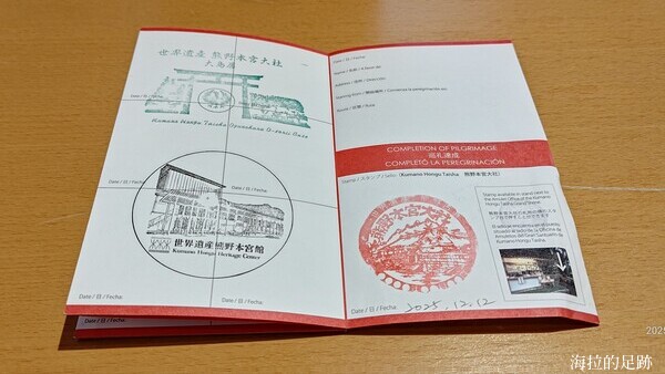 馬不停蹄地走回適才經過的世界遺産熊野本宮館, 來這裡蓋熊野古道中邊路的最後一個章, 順便領取證書. 我們團員中有人已經走完西班牙朝聖之路, 來此領取雙朝聖證書, 然後等吃完午餐, 領隊再帶他們拿著雙朝聖證書走回本宮大社請工作人員確認, 安排擊鼓儀式.