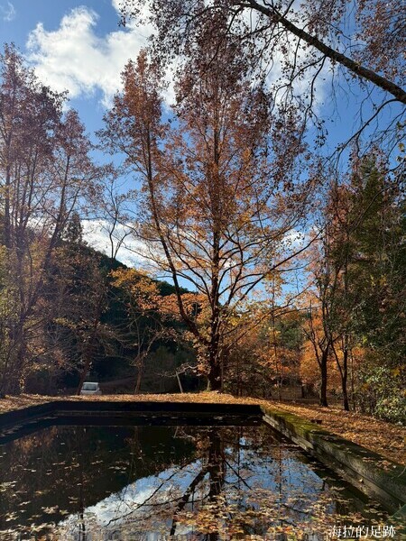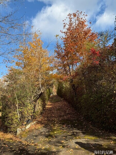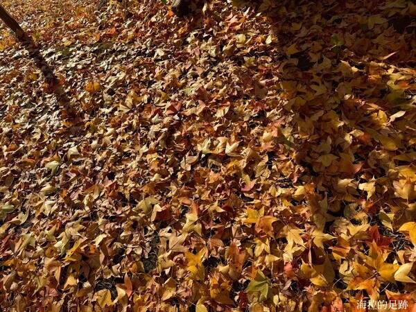 大家喜歡聽鞋子踩在落葉上的聲音嗎? 楓葉地毯踩起來很柔軟, 很舒服.