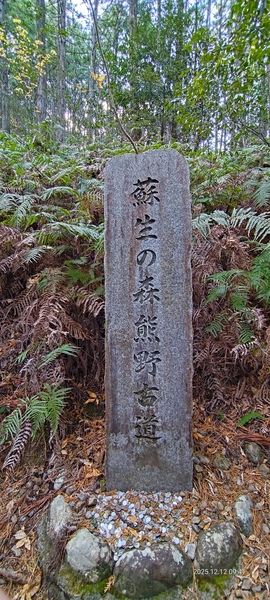 熊野古道, 特別是中邊路被譽為「蘇生之森」, 古代人認為這條路是通往來世的旅程, 蘇生意指靈魂在此「重生」、「復活」與療癒的聖地, 參拜完畢後會有一種像重生一樣的「心靈復甦」之感. 過了水吞王子抽印所後, 開始進入森林小徑.