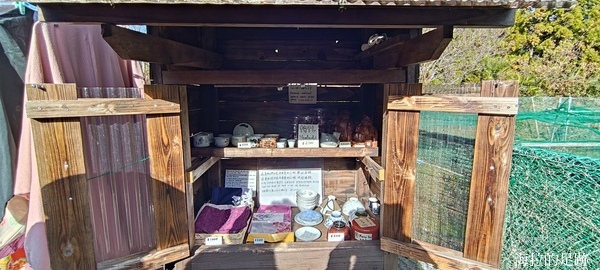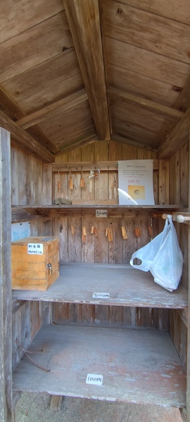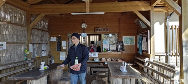 第一件事依舊是蓋章, 伏拜王子這裡有一個帶頂棚的休息區-伏拜茶屋, 當地人提供手工製作的小吃和溫泉水泡的咖啡, 營業日隨心情變動, 我們很幸運地遇到它有營業.