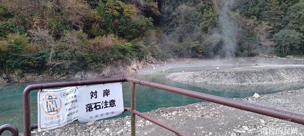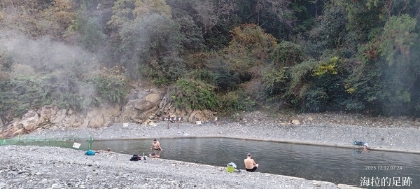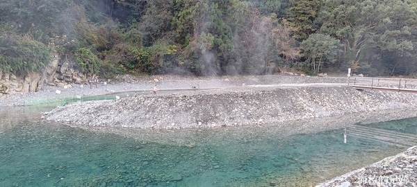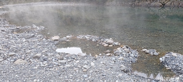看來早上有人來河邊挖溫泉, 水面上散發著溫泉氤氳的熱氣, 如仙境般迷人.