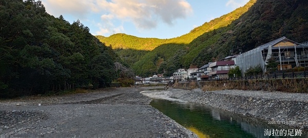 河邊的風景優美, 河水碧綠清澈, 遠處層巒疊翠, 河光山色, 老實說沒去仙人風呂泡個湯太可惜.