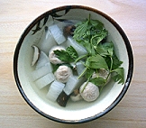 材料﹕白蘿蔔一條、香菇數朵、貢丸數粒、圓葉當歸嫩枝2-3枝