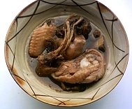 材料﹕明日葉燉包(或用乾燥的明日葉根及莖)約30克、雞腿肉一斤、米酒
