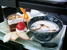 因為感覺別緻,兩層提籃裝有看來豐盛卻不會擔心吃不完的茶點,沙拉、茶凍、水果、蛋糕皆色味兼備,尤其視覺感十足,看得出來這該是個熟練的廚師作品,欣賞了半天才開始慢慢品味,覺得台中生活在某些時候就是比北部幸福﹗下午茶花費不多就有悠閒及質感,連早上去吃碳烤飯糰的店,都可以裝潢地像是個性餐廳,乾淨、明亮,服務也專業,不到百元的消費卻不輸北部好幾百元的飯店感覺,也因此聽說台中要開餐飲業可也極競爭,因為消費者都給寵壞囉﹗
