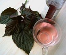 材料﹕將紫蘇葉及冰糖置入玻璃罐中,再倒入醋,密封後置放約一個月,醋色即會變成深紅色,過濾葉渣後,將紫蘇醋裝瓶即可使用。